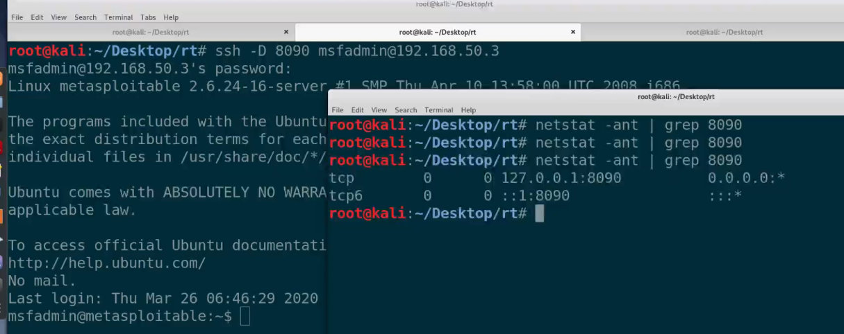 Now, let's start the socks proxy server to access the pivot system on the attacker's machine using the proxychains tool.
