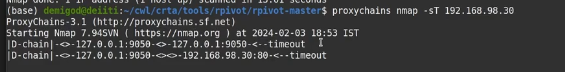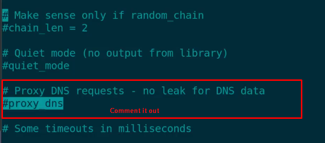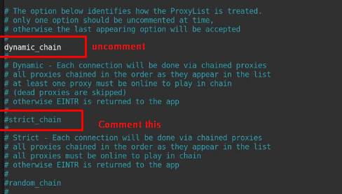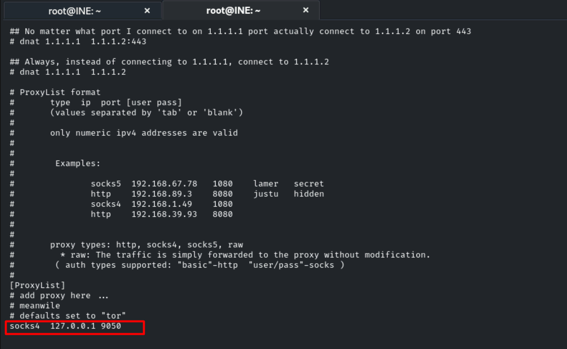 Note: The proxychains should have configured with the following parameters (at the end of /etc/proxychains4.conf):
