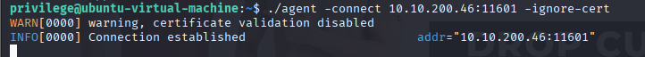 Starting the agent is simple. Simply start the agent from the folder you saved it to. If you're using Linux, ensure it's executable using the chmod +x command. Then, to start the agent and connect it to the Ligolo-ng proxy, run the following command: