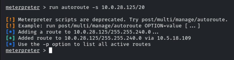 We will add a route and then we will run an auxiliary port scanner module on the second victim machine to discover a host and open ports.