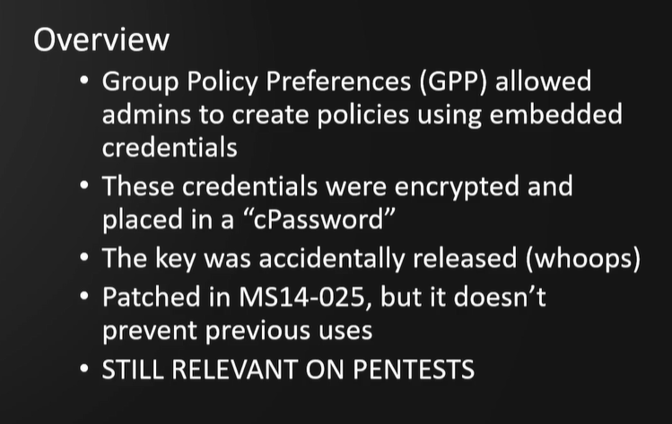 Group Policy provides administrators with many advanced settings that can be applied to both user and computer objects in an AD environment. Group Policy, when used right, is an excellent tool for hardening an AD environment by configuring user settings, operating systems, and applications. That being said, Group Policy can also be abused by attackers. If we can gain rights over a Group Policy Object via an ACL misconfiguration, we could leverage this for lateral movement, privilege escalation, and even domain compromise and as a persistence mechanism within the domain. Understanding how to enumerate and attack GPOs can give us a leg up and can sometimes be the ticket to achieving our goal in a rather locked-down environment.