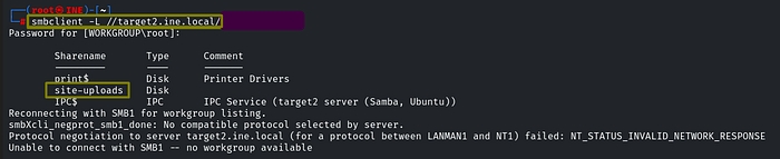 Check for shared folders as well. In this case, we can see that the share site-uploads is accessible without credentials so let's navigate to that in our web browser