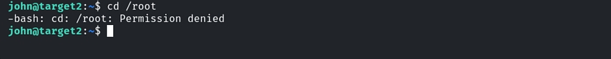 Now, we need to enumerate our privileges to access the root’s home directory, as we currently lack the necessary permissions.