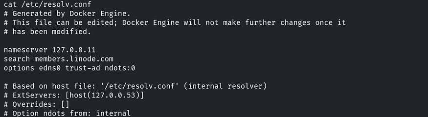 The DNS configuration is located in the /etc/resolv.conf file. To read its contents, use the command: