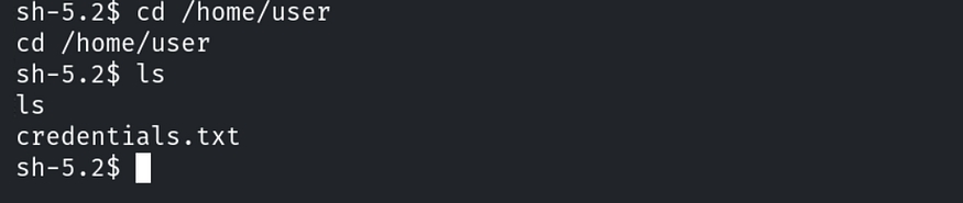 And here is a file named credentials.txt. To read its contents, type cat credentials.txt.