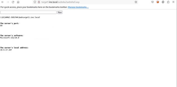 We will then open the browser and navigate to /webdav/webshell.asp