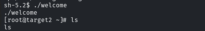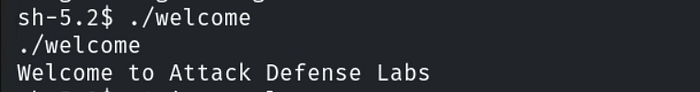 Let’s check the permissions of these two binaries. We don’t have permission to execute the ‘greetings’ binary, but we are able to execute the ‘welcome’ binary.