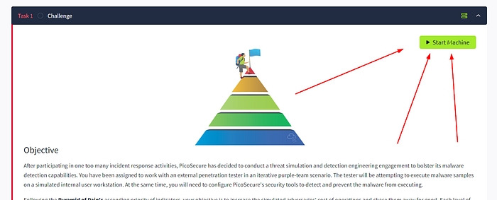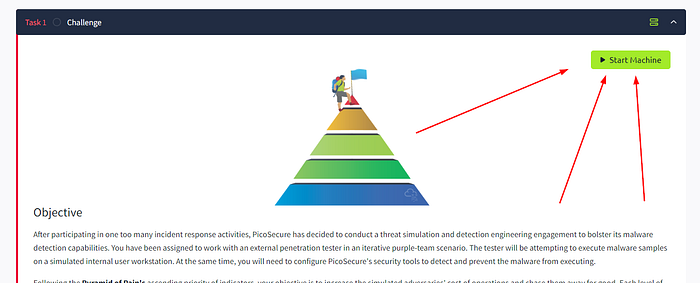 Start by clicking on the green Start Machine box in the top right of the Task 1 section.