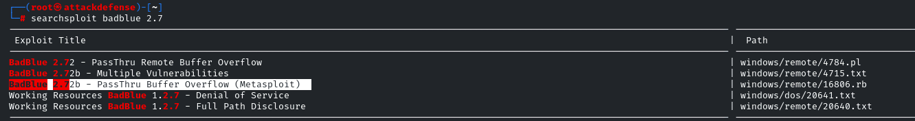 We will search the exploit module for badblue 2.7 using searchsploit.