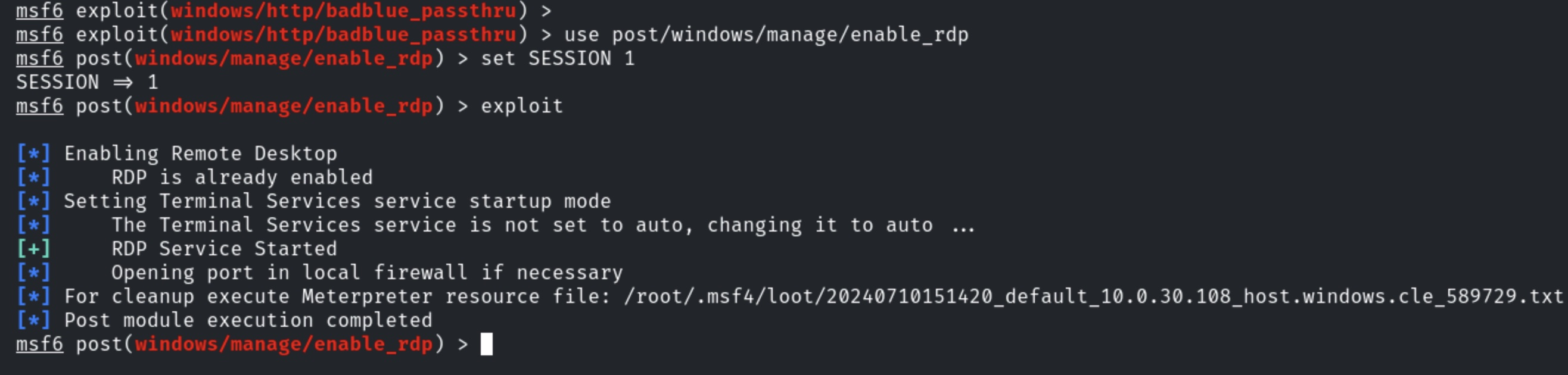There is a metasploit module for badblue server. We will use PassThru remote buffer overflow metasploit module to exploit the target.