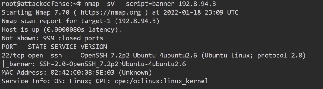 As shown in the following screenshot, the banner.nse script does not reveal any new information regarding the version of OpenSSH running on port 22.
