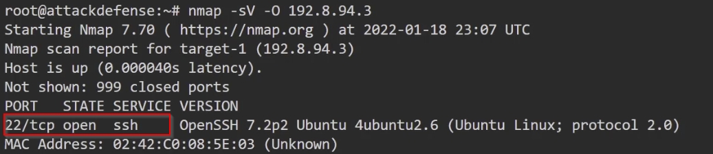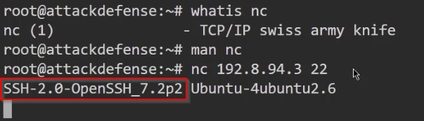 As shown in the following screenshot, we can confirm that OpenSSH 7.2p2 is running on port 22 on the target.