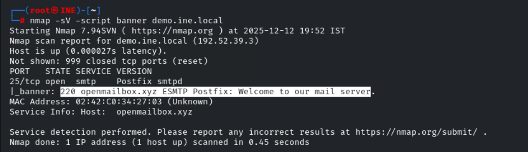 nmap -p 25 --script smtp-commands 192.168.18.110