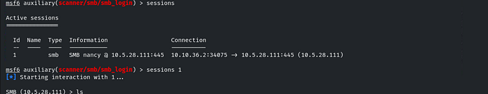 We have successfully compromised the ‘nancy’ user. To view the active sessions, type the command sessions. To interact with the session, use the following command: sessions 1.